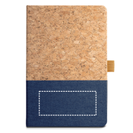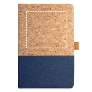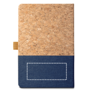 Stilvolles A5-Notizbuch mit einem hochwertigen Hardcover aus einer natürlichen Kombination von Kork und Leinen. Das Notizbuch enthält 192 linierte Seiten aus edlem elfenbeinfarbenem Papier (70 g/m²), welches aus FSC™-zertifizierten und kontrollierten Quellen stammt. Ein integrierter Kugelschreiberhalter sorgt dafür, dass Ihr Schreibgerät stets griffbereit ist. Da es sich um ein Naturprodukt handelt, ist jedes Buch ein Unikat mit individueller Farbgebung und Maserung – ideal für einen nachhaltigen Werbeauftritt.