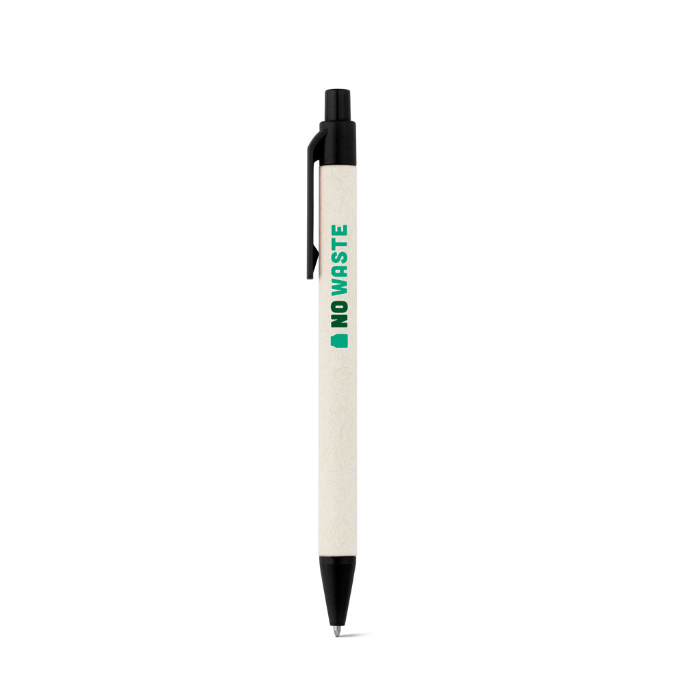 Nachhaltiger Kugelschreiber aus recycelten Milchkartons. Dieses Modell trägt aktiv zur Wiederverwendung von Karton und Aluminium bei. Das Gehäuse besteht aus Karton, während die farbigen Komponenten aus 100% recyceltem ABS (rABS) gefertigt sind.