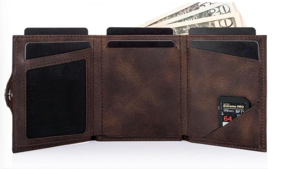 Hochwertige Trifold Geldbörse aus echtem Leder – Made in EU. Durch das kompakte Design und den schnellen Zugriff auf Karten ist sie der ideale Begleiter für den Alltag.